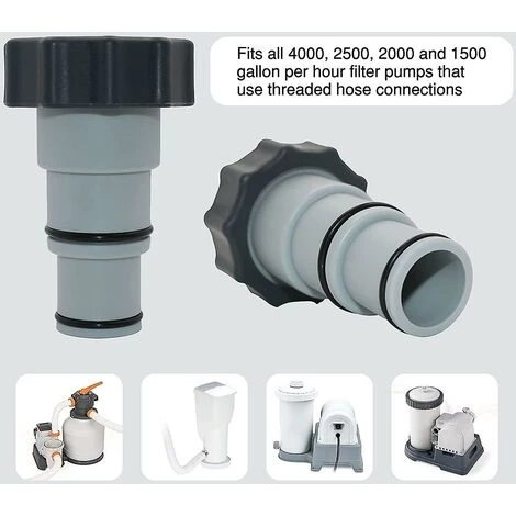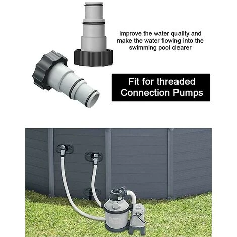Bullet Points: 1Perfect Connector: Cet adaptateur de tuyau de piscine est destiné aux piscines hors sol. Parfait pour raccorder un tuyau de 1,25 à une vanne à piston de 1,5 ou passer à une pompe de filtration plus puissante. 2Largement compatible : convient aux pompes à raccord fileté. Compatible avec toutes les pompes de filtration de 4000, 2500, 2000 et 1500 gallons par heure qui utilisent des raccords de tuyaux filetés. 3 Outils bénéfiques : les adaptateurs de vidange de piscine rendent la connexion plus serrée, aident à améliorer la filtration, améliorent la qualité de l’eau et rendent l’eau qui coule dans la piscine plus claire. 4 Qualité durable : l’adaptateur de vidange de piscine utilise des matériaux fiables et inoffensifs. Durable et sûr à utiliser. Il a une longue durée de vie et est le remplacement parfait. 5Installation simple : les adaptateurs de tuyau A permettent à une extrémité de se connecter à un tuyau de 1,25 ou 1,5 pouces et à l’autre extrémité à un collier fileté à la pompe pour un ajustement correct. Conception de clip réglable. Caractéristiques : 1. Cet adaptateur de tuyau de piscine est destiné aux piscines hors sol. Parfait pour raccorder un tuyau de 1,25 à une vanne à piston de 1,5 ou passer à une pompe de filtration plus puissante. 2. Haute compatibilité. Conçu pour les pompes à raccordement fileté. Compatible avec toutes les pompes de filtration de 4 000, 2 500, 2 000 et 1 500 gallons/heure qui utilisent des raccords de tuyau filetés. 3. Les adaptateurs de vidange de piscine rendent la connexion plus serrée, aident à améliorer la filtration, améliorent la qualité de l’eau et rendent l’eau qui coule dans la piscine plus claire. 4. Fabriqués à partir de matériaux fiables et inoffensifs, ces adaptateurs de vidange de piscine sont durables et sûrs à utiliser. Avec une longue durée de vie, ils sont le remplacement parfait. Spécification : Nom du produit : adaptateur de tuyau de rechange A avec collier Couleur : gris Matériau : plastiques fiables Taille : 4,3 x 2,76 x 2,2 x 1,6 x 1 pouce / 11 x 7 x 5,5 x 4 x 2,5 cm Comment utiliser : la petite extrémité se connecte à un tuyau de 1,25 et l’extrémité filetée se connecte à une valve à piston de 1,5 ou à une pompe à filtre, et il suffit de la visser. Liste de colisage : 2 * adaptateurs 2 * patins en caoutchouc 2 * cerceaux