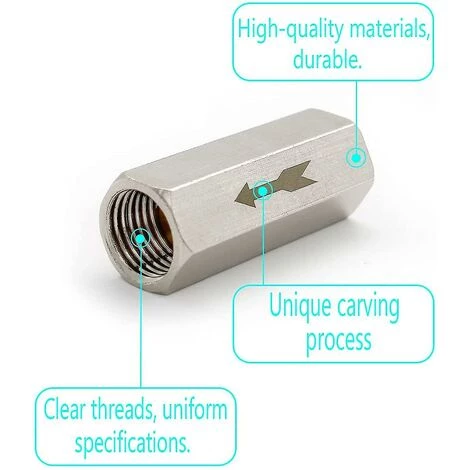 Clapet anti-retour 2 pièces 1/4 pouces clapet anti-retour à air hexagonal, clapet anti-retour unidirectionnel, pour réservoir sous pression de chaudière, argent