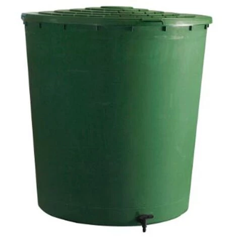 Récupérateur d’eau aérien de forme ronde d’eune capacité de 500L; Equipé d’un robinet et d’un couvercle clipsé. Pratique, il se positionne discrètement près de vos gouttières.
