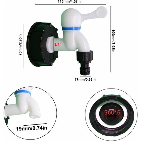 Il convient à la plupart des conteneurs Standard Royaume-Uni et d’IBC européen, où le thread de support est un filetage S60X6 grossier.