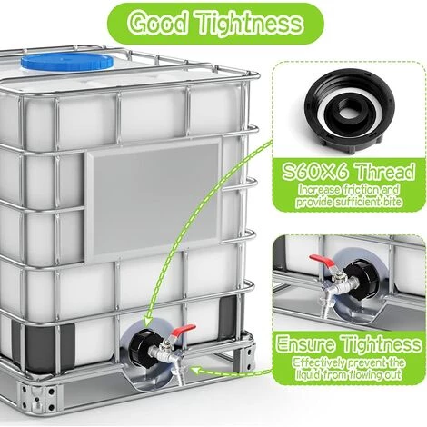 - – Il s’adaptera à la plupart des conteneurs IBC britanniques et européens standard où le filetage de support est un filetage grossier S60X6.