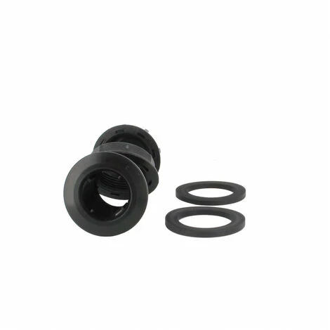 Passe Paroi en polypropylène, fileté mâle 1 »1/4 Pas du Gaz. Livré avec bouchon, écrou et 2 joints.