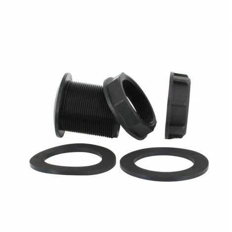 +Passe Paroi en polypropylène, fileté mâle 2 » Pas du Gaz, avec écrou, bouchon et 2 joints.