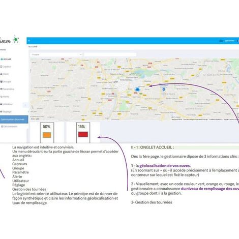 Equipé d’une sonde de mesure de remplissage assorti de la plateforme de gestion SIMON qui donne l’alerte quand le niveau de remplissage atteint 20% et vous propose une gestion optimisée des tournées de remplissage des cuves vides. Cela comprend en sus un abonnement téléphonique au réseau Lora pendant 2 ans.