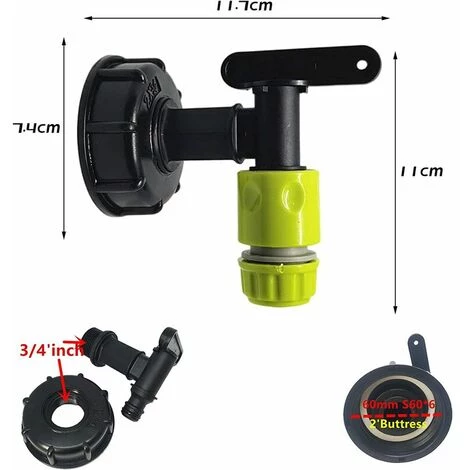 SINCèREETALI Adaptateur , Adaptateur De Réservoir S60x6 Vanne Robinet 3/4 », Plastique Robinet De Sortie D’eau Valve De Remplacement Pièces De Raccord Pour Récupérateurs Eau De Pluie