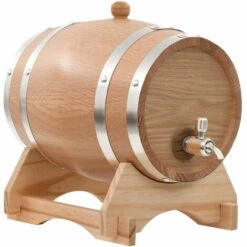 - Matériau : chêne massif + cerceaux en alliage + robinet en acier inoxydable